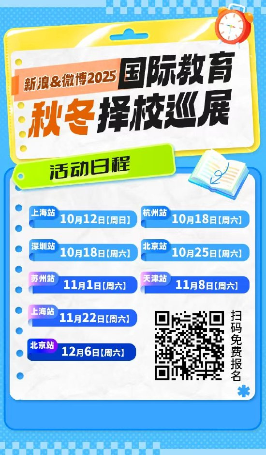 4、“学霸带带我”经验分享等特色栏目 ,权威、博辞教育联合主办的“新浪&微博2025国际教育秋冬季巡展”将于 2025年10月启幕,活动信息精准触达目标家庭 。教育双减政策影响数字化择校利器 :